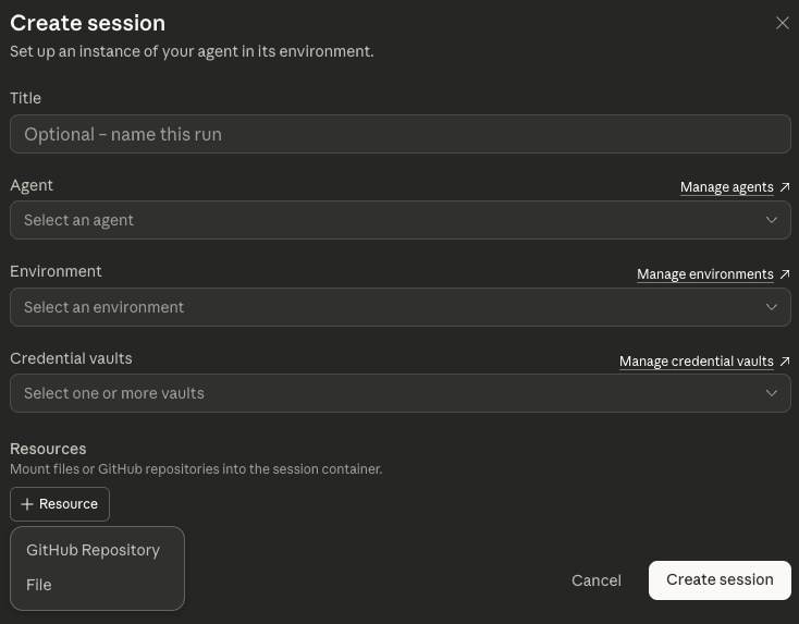 template: deep-researchEnvironment: This is the production infrastructure. It’s a container hosted on Anthropic’s servers. You create an environment once, which an agent then uses every time a new session starts. Every session uses its own isolated container instance. Of course, you can create specific environments preconfigured for specific agents.