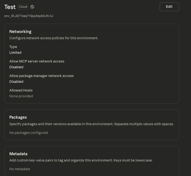 Network controls: These range from unrestricted (yikes) to limited, which restricts network access to a pre-defined list. This can be further restricted to allow/disallow external MCP servers and specified packaged managers, providing tighter security. This is especially important given that the containers are installed with SSH and SCP by default, so your data has an easy exit path if you don’t tighten down network controls or monitor.