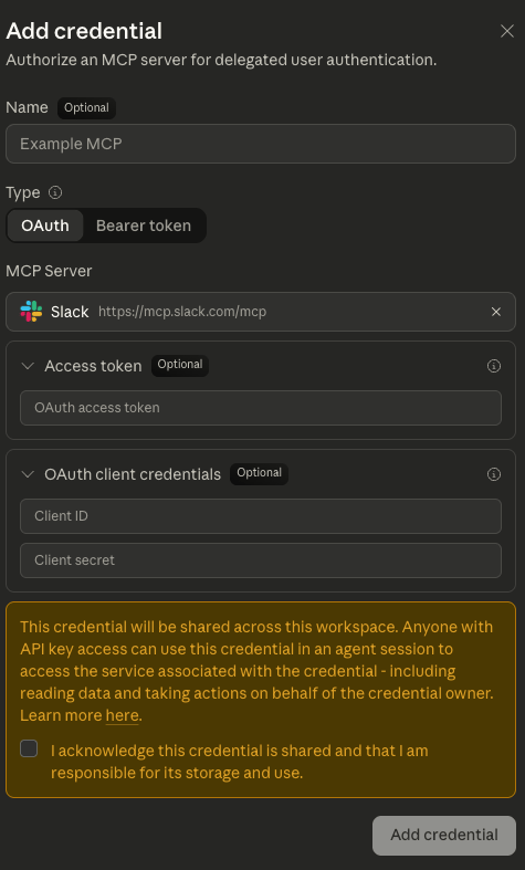 Screenshot from the Credential Vaults tab under Managed Agents