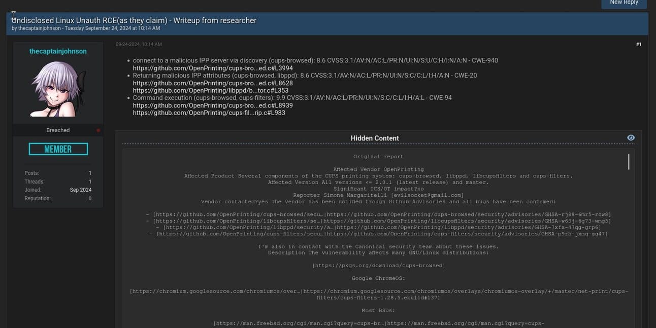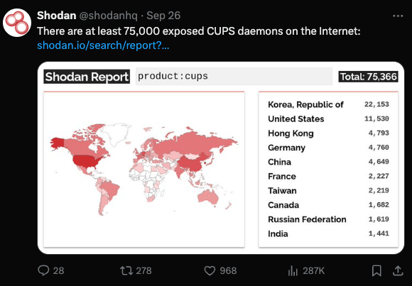 Okay, cool. What’s the vulnerable software? The vulnerability impacts Linux systems running CUPS. While the CUPS service won’t hold a delicious beverage for you, it will help direct print jobs to printers for you. Who knew that a service that does something as boring as routing printer jobs could become so popular?