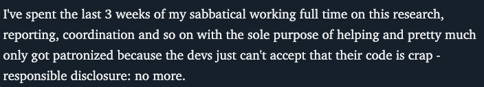 Matters were made worse when the original agreed-upon disclosure date of October 6th was sped up to September 26th because the report was leaked on a hacking forum.